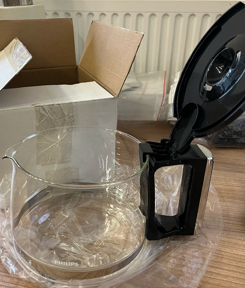 Kávéskanna:Ez a kanna a kávéfőzővel készített kávét gyűjti össze. Garantáltan megőrzi a kávé aromáját és megfelelő hőmérsékletét. Kompatibilis a Philips Grind & Brew kávéfőzővel.